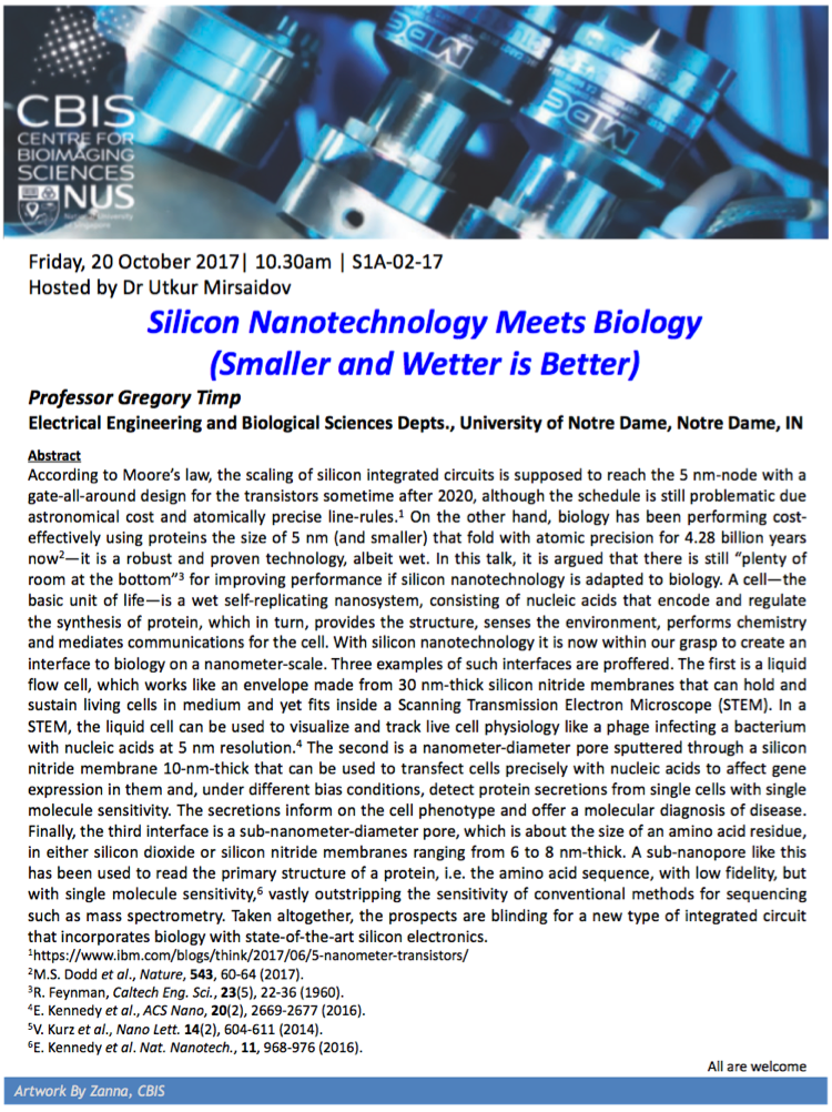 CBIS SEMINAR: SILICON NANOTECHNOLOGY MEETS BIOLOGY (SMALLER AND WETTER IS BETTER) BY PROFESSOR GREGORY TIMP