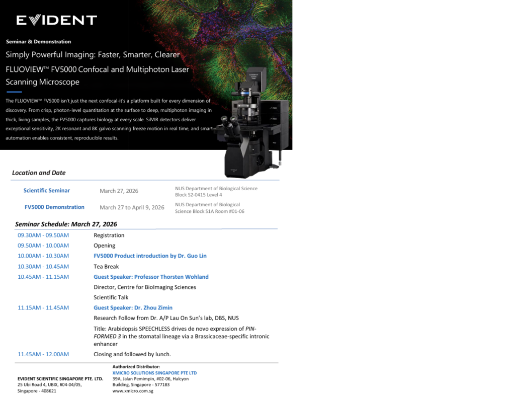 We are pleased to invite you to an upcoming workshop on the Evident FluoView FV5000 Laser Scanning Confocal & Multiphoton Microscope System, marking its first launch event in Singapore.