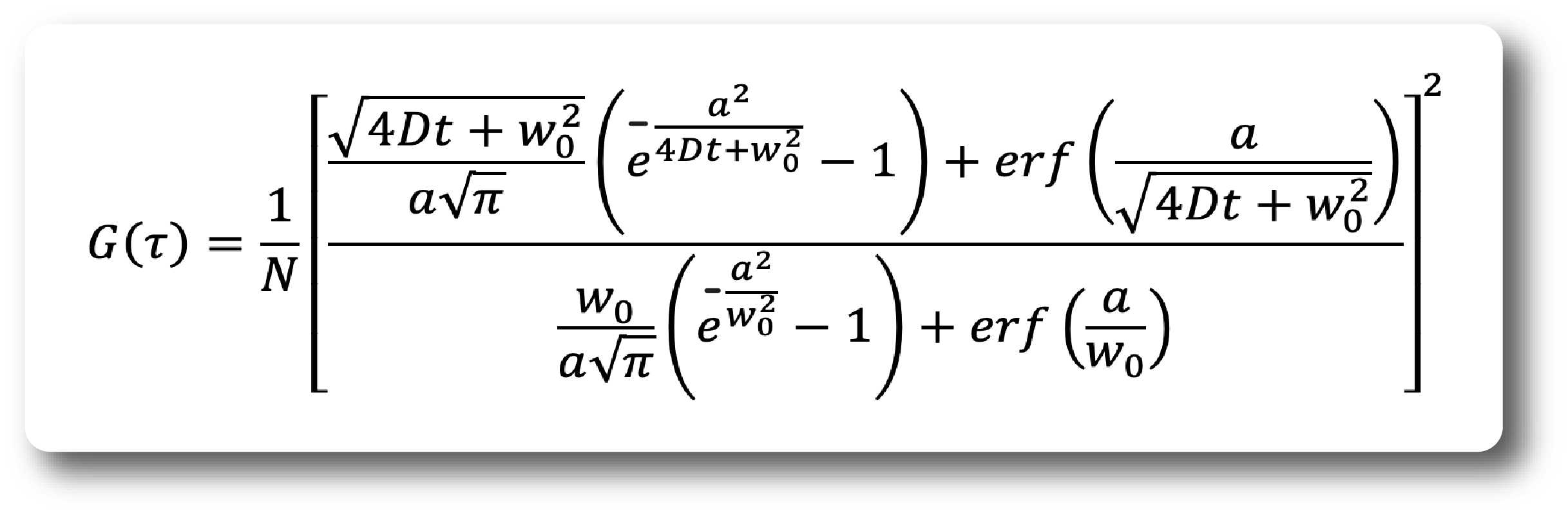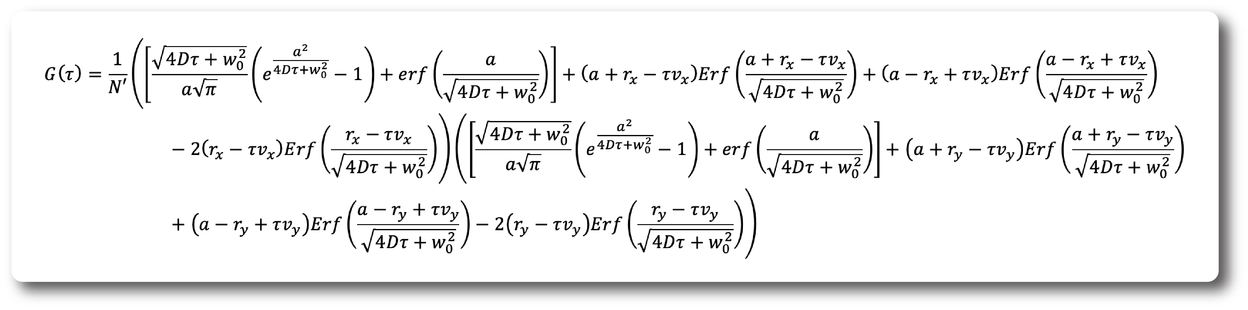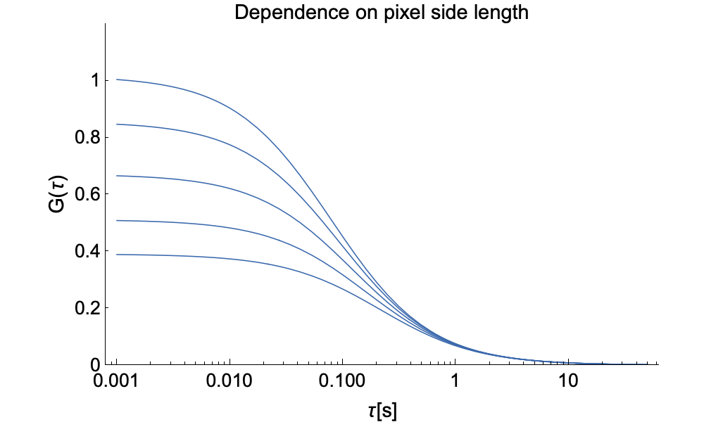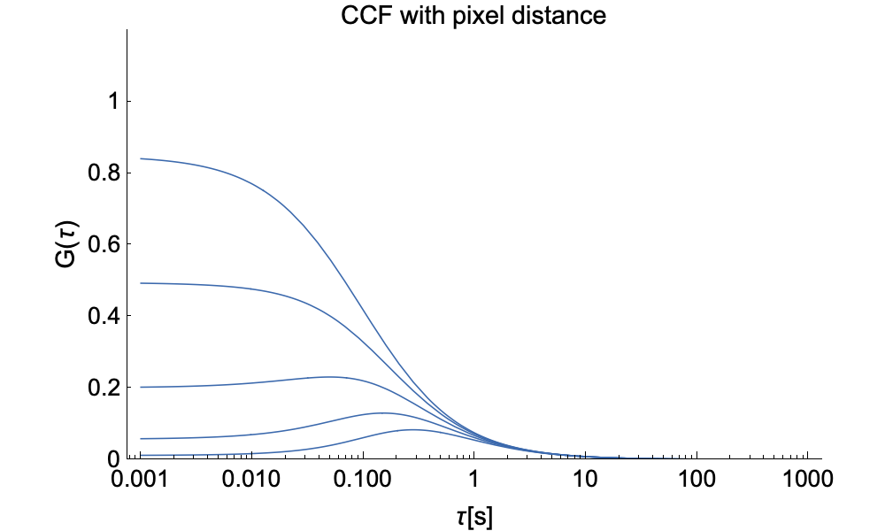 Note that we assume that there is no movement in the z-direction and we assume pure 2D diffusion. This is typically fulfilled when measuring on membranes. Otherwise, if movement in the z-direction needs to be accounted for then one needs to include an ACF component for movement along the exponentially decaying field in that direction.