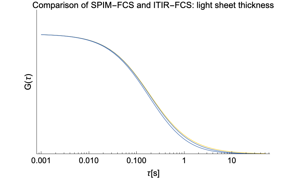 The ACFs in SPIM-FCS exhibit the same general characteristics as the ones in ITIR-FCS. The main difference is that in the case of SPIM-FCS we need to take into account movement along the optical axis of the detection objective and thus study 3D diffusion.