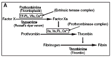 Dissection approach – We designed a simple approach to determine the particular step at which an anticoagulant interferes in the extrinsic pathway. This “Dissection Approach” is rapid, cost effective and employs three commonly used clotting assays, namely prothrombin time, Stypven time and thrombin time. It is based on the simple principle that initiating the cascade "upstream" from the inhibited step will result in elevated clotting times, while initiating the cascade "downstream" from the inhibited step will not affect the clotting time.