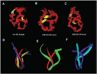 can change ribbon conformation to globular in λ/χ-conotoxins. When proline was inserted into the first intercysteine loop, indeed CMrVIa λ/χ-conotoxin switched the disulfide pairing and conformation to that of globular form. Although amidation of the C-terminal enhanced the amount of protein folded into globular conformation, by itself did not switch the conformation significantly towards globular conformation.