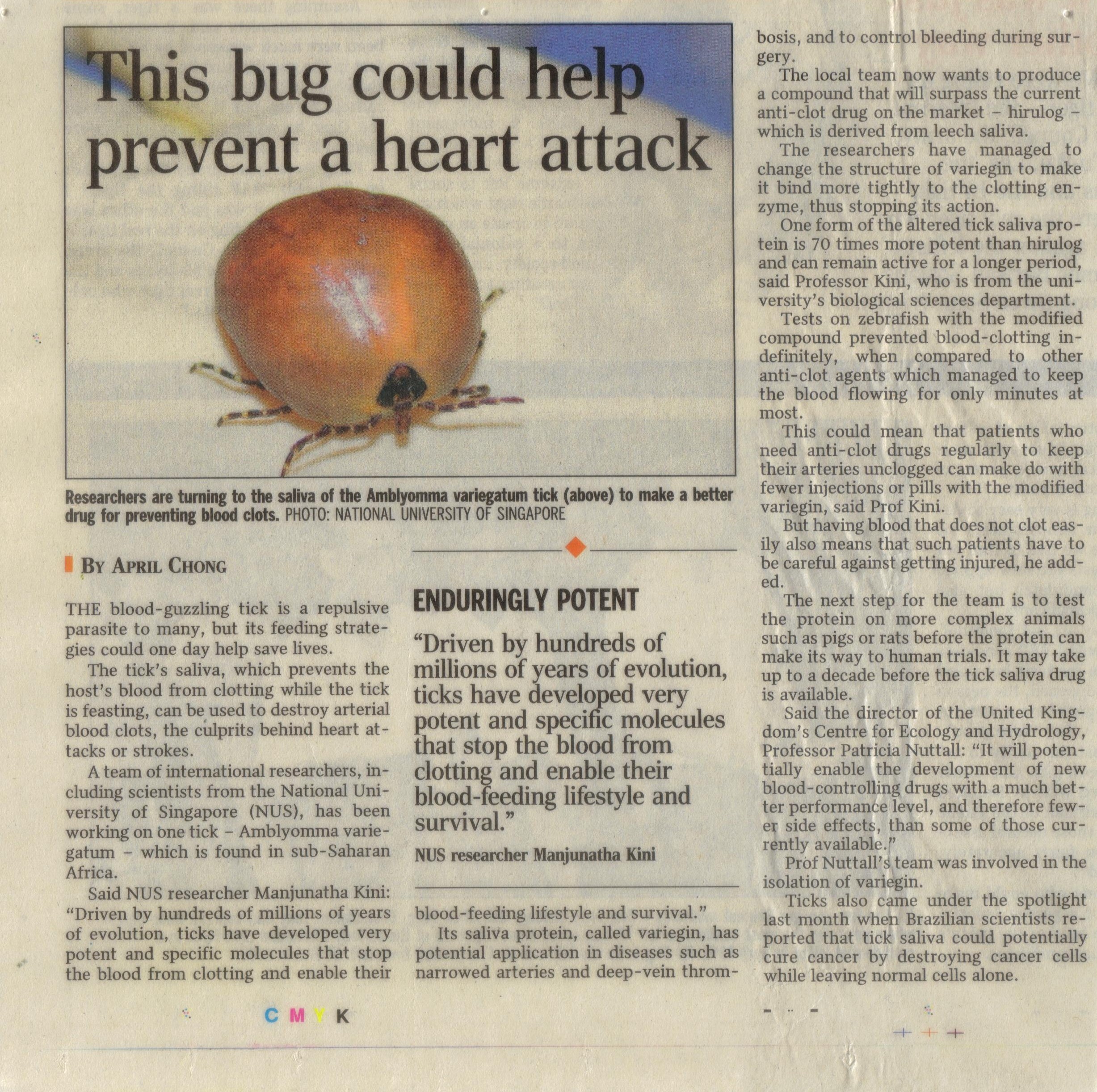 ticks which stops blood from clotting. The novel protein
