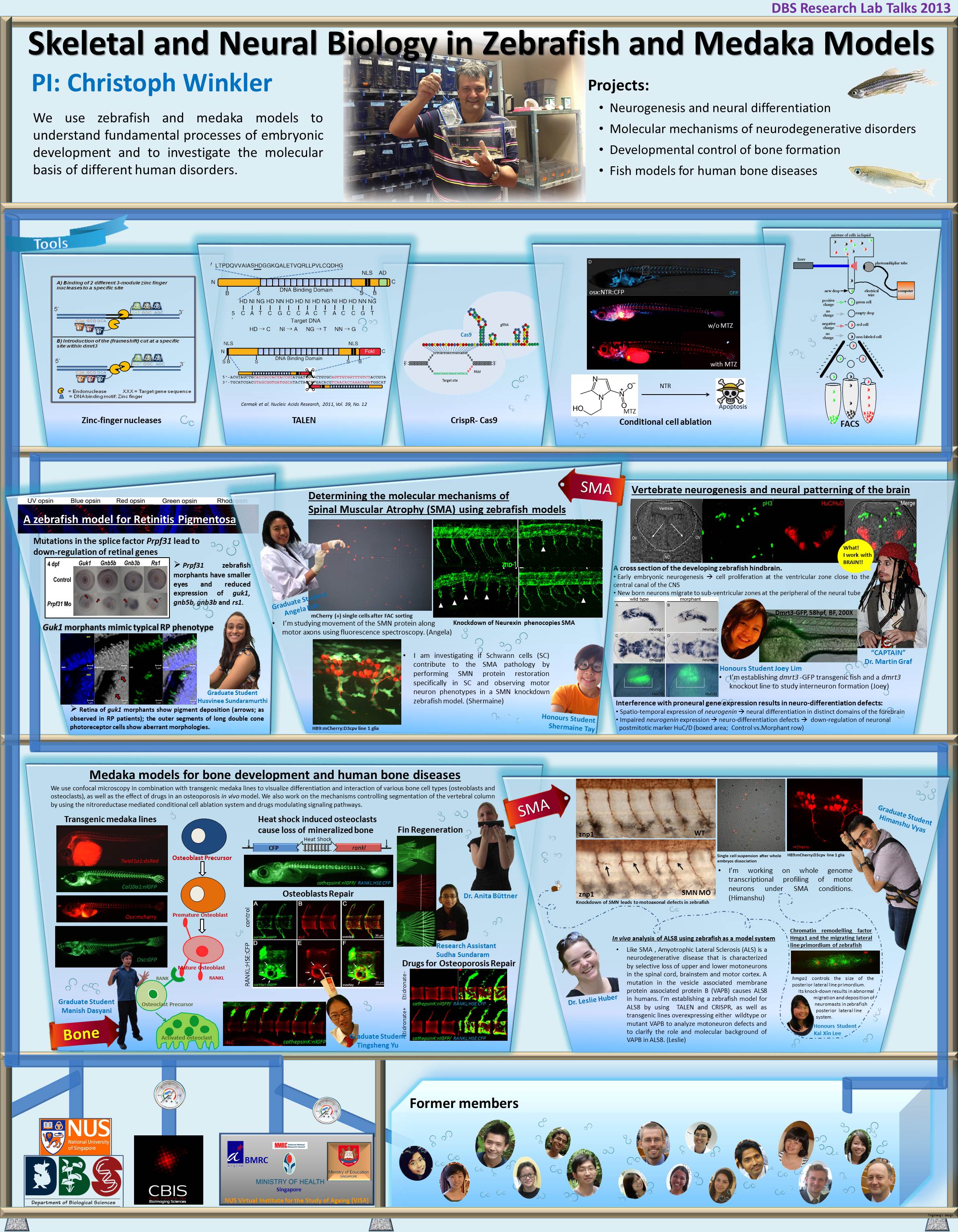 We are interested in the cellular mechanisms that control bone homeostasis. Fish, such as medaka, have bone cells very similar to humans. Also, the genetic networks regulating formation of bone-forming osteoblasts and bone-resorbing osteoclasts are highly conserved. We have established several transgenic medaka lines that express fluorescent reporters in bone cells at distinct stages of differentiation, or express Rankl, an osteoclast-inducing factor, under control of a heatshock promoter. Upon heatshock, Rankl induces the formation and activation of ectopic osteoclasts. This results in degradation of bone matrix in a manner very similar to the situation in human osteoporosis patients. This unique in vivo model allows visualization of osteoblast/osteoclast interaction in an intact living animal during bone degradation as well as regeneration.